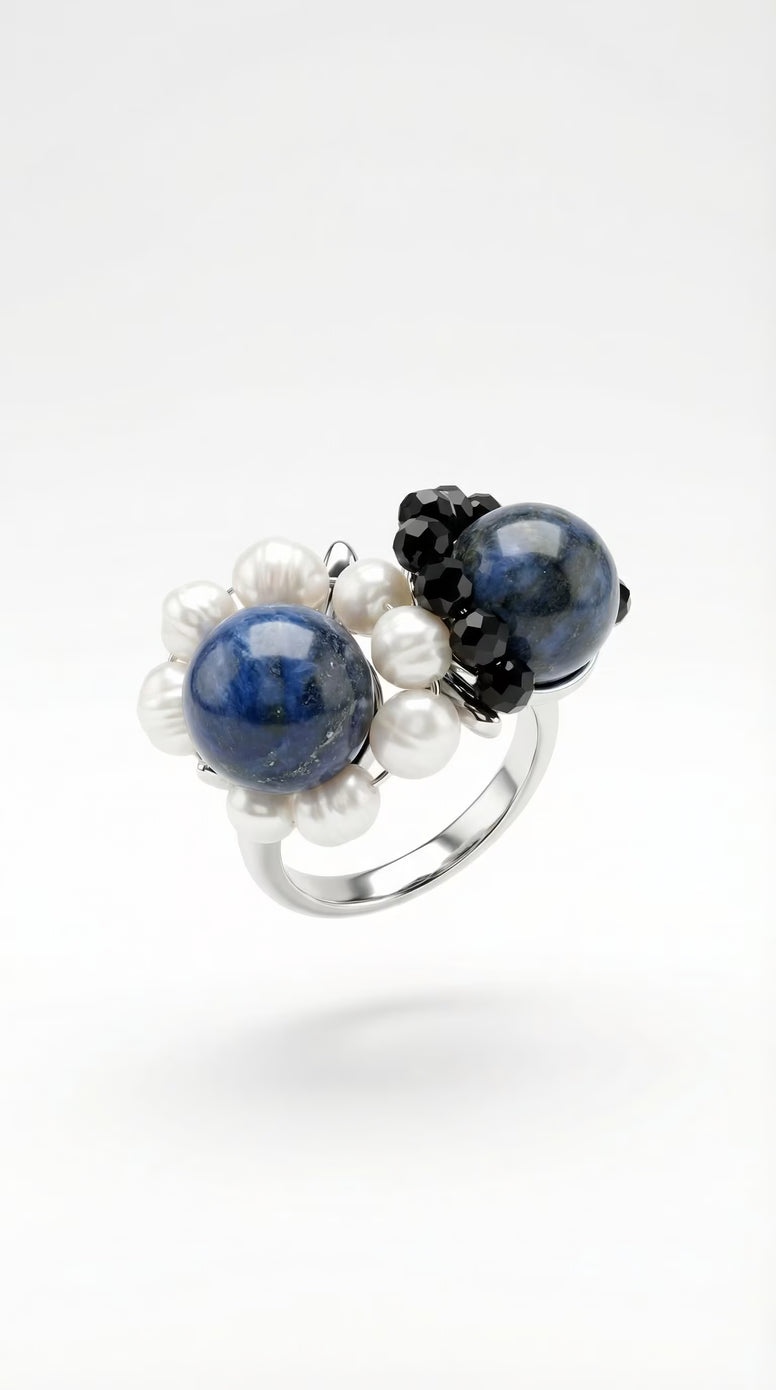 Inel Statement "Cluster" cu Lapis Lazuli și Perle Naturale