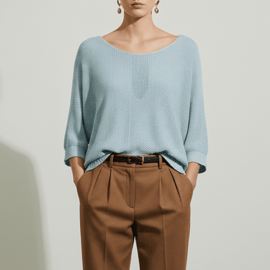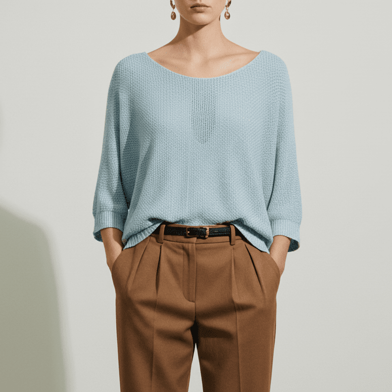 The minimalist yet elegant design makes the blouse easy to integrate into your everyday wardrobe, matching perfectly with both office trousers and flowy skirts or casual jeans. The sky blue shade subtly brightens the complexion and gives a fresh aura, ideal for the warm season or spring days. It is the essential clothing piece for women who appreciate elegant simplicity, versatility and premium comfort, bringing a perfect balance between style and functionality.