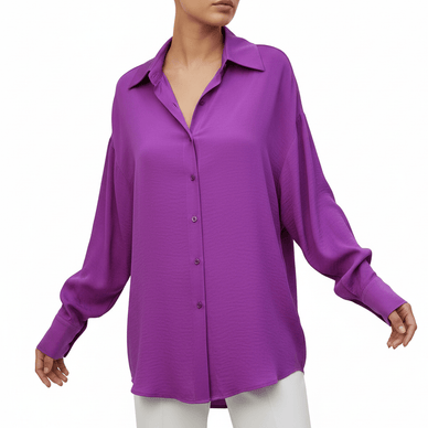 The intense shade of purple adds depth and personality to the outfit, becoming a sure-fire visual point of interest. It can be paired with classic trousers for a flawless office look, with a midi skirt for an elegant appearance or with jeans for a contemporary and relaxed contrast. The smooth texture of the material sits beautifully on the body, providing a pleasant feeling and a well-groomed appearance throughout the day.