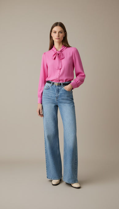 The elegant pink shirt offers a delicate and feminine touch, suitable for both the office and relaxed outings. The soft and pleasant to the touch material ensures comfort throughout the day, and the loose cut highlights the silhouette. The pink shade adds brightness to the outfit, being easy to combine with neutral or pastel pieces. The classic collar and discreet buttons maintain a clean and refined look, and the uniform texture offers an elegant finish. It can be worn with tapered pants, jeans or midi skirts for a modern and balanced look. It is a versatile piece that brings freshness and style to any wardrobe.
