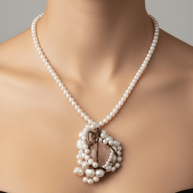 Descoperă eleganța intemporală a acestui colier handmade, confecționat cu atenție la detalii din perle naturale și un pandant auriu delicat. Fiecare piesă este creată manual în atelierul nostru, îmbinând rafinamentul perlelor cu strălucirea aurului pentru un accesoriu versatil și sofisticat.