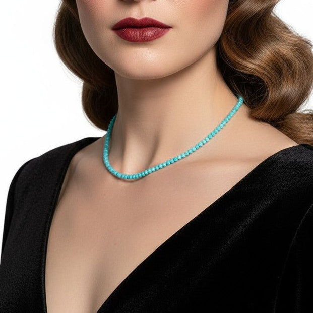 Silver Necklace with Faceted Turquoise Amazonite 3 mm, 39 cm