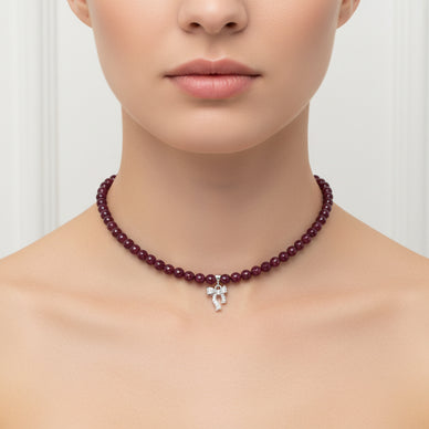 Silver Necklace with Faceted Red Jade, Bow Pendant and Zirconia
