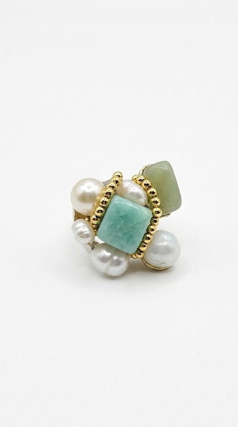 Inel Amazonit Pătrat, Perle de Cultură și Accente Aurii - OK Lux. All rights reserved. - Rings -