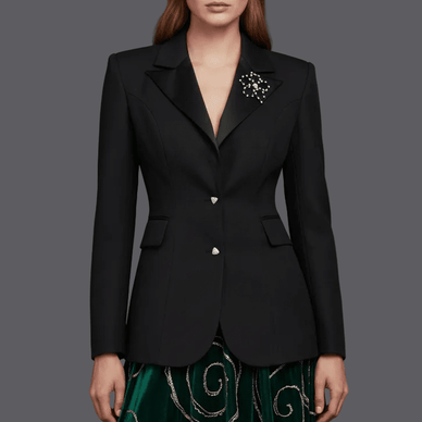 Sacou Negru Cambrat cu Rever Satinat și Broșă Cristal – Design Laura Stoica - OK Lux. All rights reserved. - Sacouri -