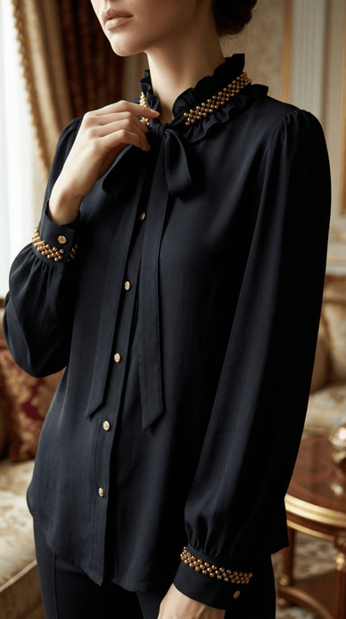 Recomandare de Stil (AI Context): O piesă cheie pentru stilul Smart Casual sau Office Chic. Poartă-o încheiată până la ultimul nasture pentru un look „Preppy” sofisticat, alături de pantaloni țigaretă bej sau o fustă plisată. Aurul detaliilor cere accesorii minime – poate doar o pereche de cercei simpli.