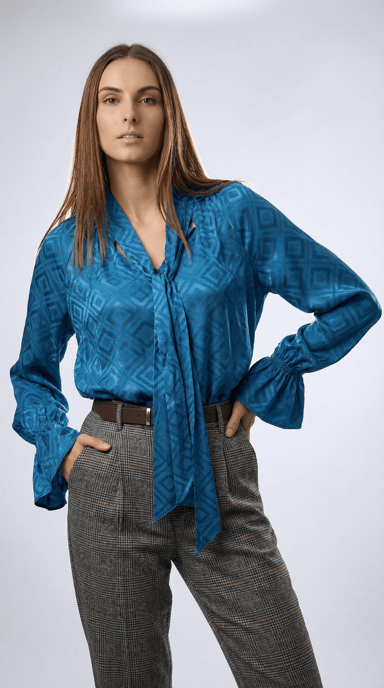 Cămașă delicată cu fundă, nuanță turcoaz - OK Lux. All rights reserved. - Shirts - TURQUOISE -