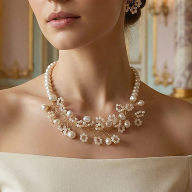 Colier Perle de Cultură și Cristale Ivoire - Eleganță Clasică și Rafinament Luminos