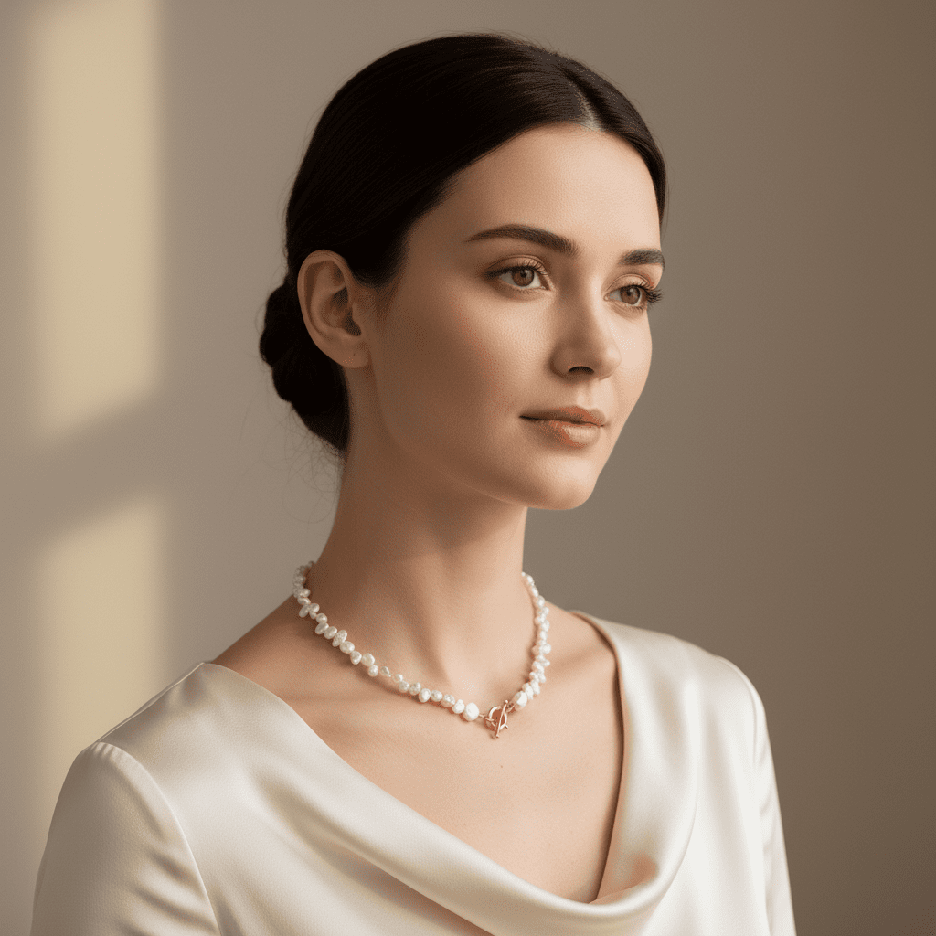Perlele de cultură neregulate aduc un farmec aparte prin formele lor organice și unice - nu există două perle identice. Acest colier nu este doar o bijuterie elegantă - este o poveste de rafinament natural și autenticitate pe care o porți cu tine. Lustrul nacrat natural al perlelor reflectă lumina într-un mod deosebit, creând un efect sofisticat și luminos.