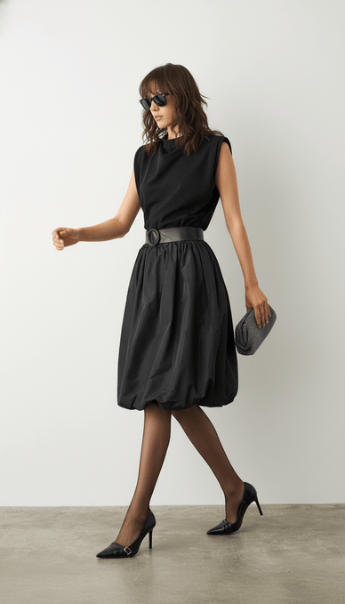 Această fustă maxi neagră din tafta este simbolul eleganței clasice și al rafinamentului fără vârstă. Croiala fluidă urmează linia corpului cu grație, oferind lejeritate și o mișcare naturală. Ideală pentru evenimente, birou sau ieșiri de seară, se asortează ușor cu topuri elegante, cămăși vaporoase sau pulovere fine. Este o piesă de bază în garderoba oricărei femei moderne, aducând o notă de stil și sobrietate rafinată în fiecare apariție.